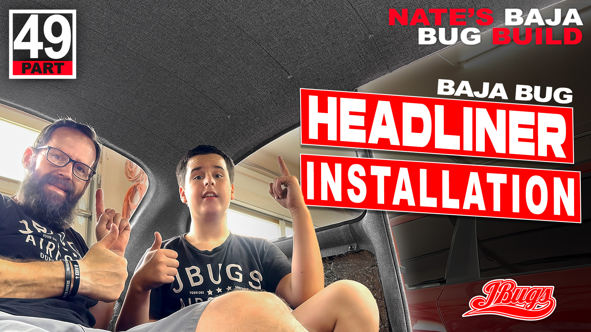Sam and Nate install new headliner padding in Nate's 1972 Baja Bug