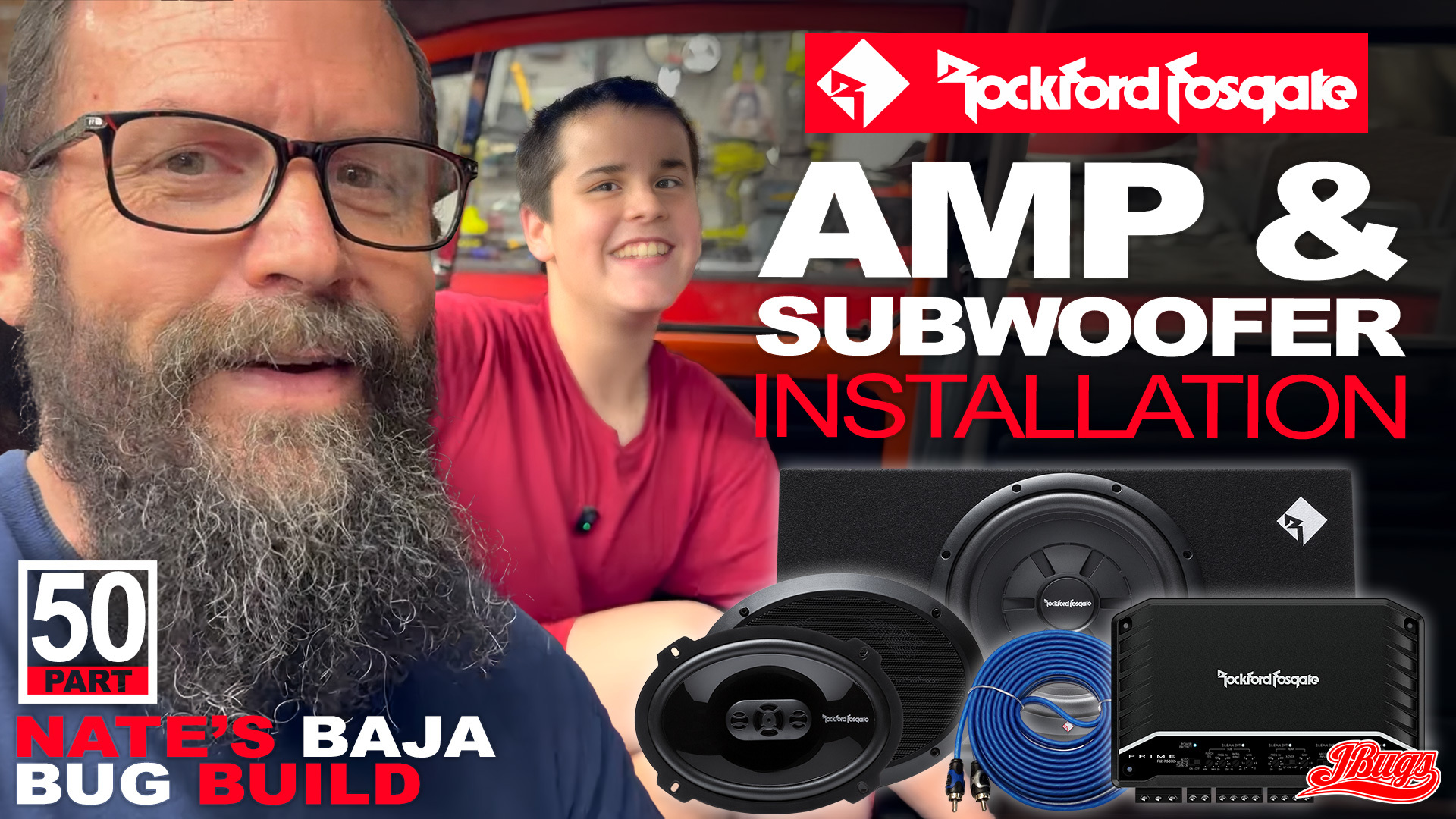 Sam and Nate complete the Baja Bug's interior with front speakers, kick panels, and carpet.