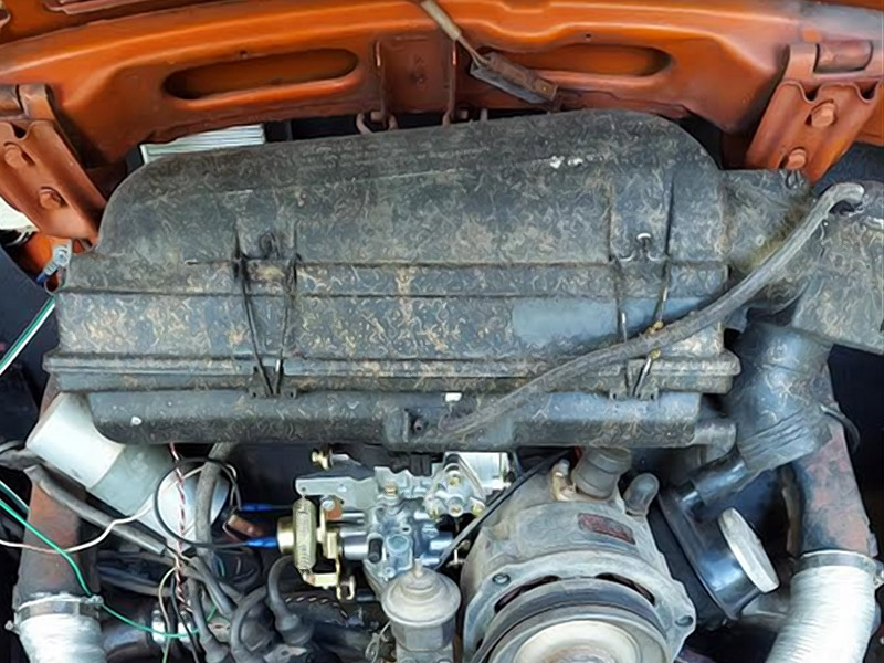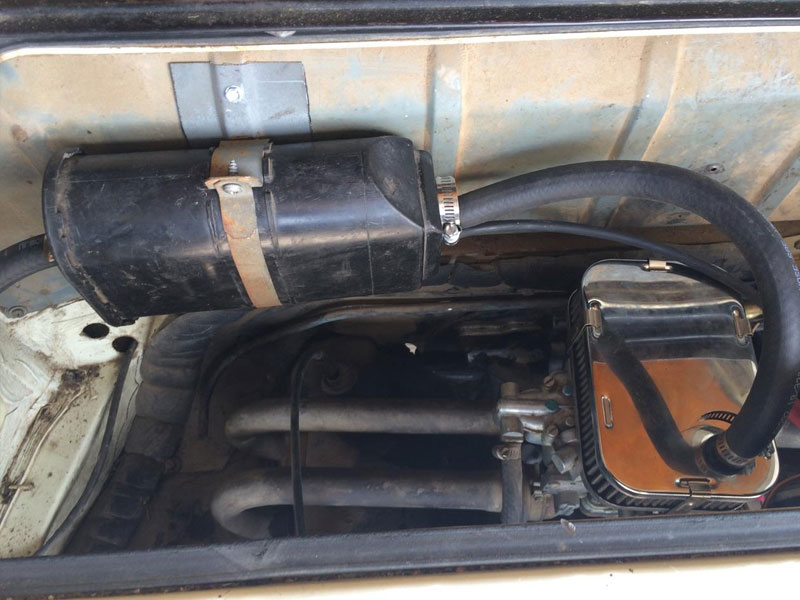Steel canister sat on top of the carburetor and used an "oil bath" air filter.