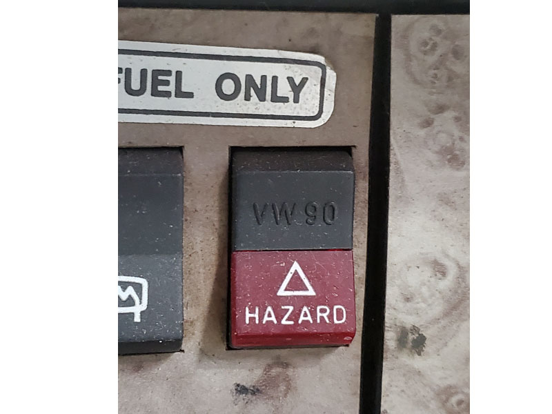 The square hazard light switch (as opposed to the round pull-knob style) was used on deluxe (113) Beetles built from 1973 onward. Standard Beetles (111) were offered pretty much everywhere else and they came equipped with the earlier pull-knob style, so that style switch is much more common to find these days. That means you’ll most likely have to head out to the junkyard to get a deluxe style switch if you need it.