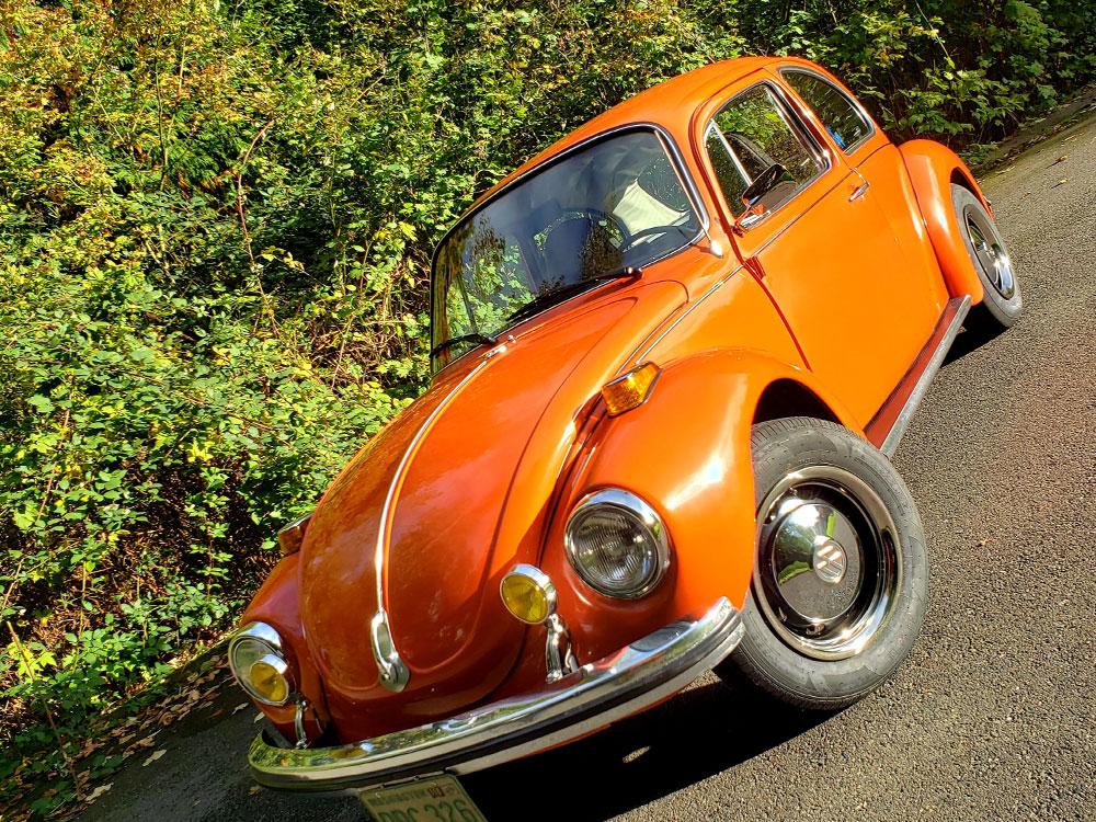 I bought my 1973 Super Beetle when I was 15 and a half for $1000 and drove her home. Honestly it was a miracle that I got home as she needed everything done to her from rust in the pans to brake work and everything in between. Fast forward 4 years later (and many orders from JBugs) she's on the road again with a fresh coat of Clementine orange paint and a ton of good vibes!