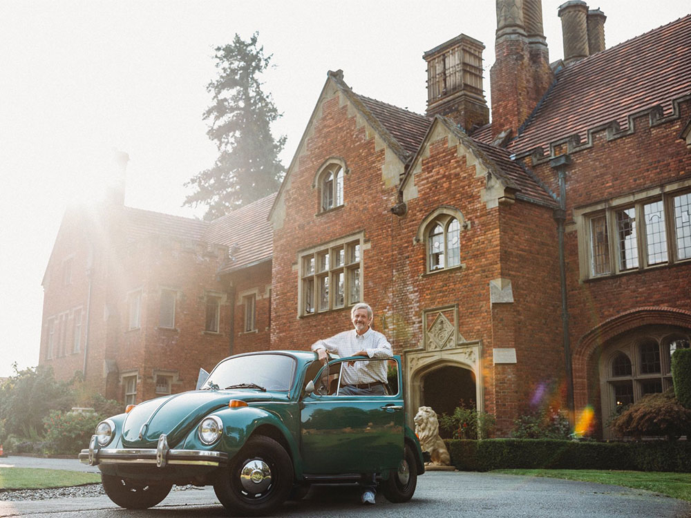 She is gone now but when the owner of Thornewood Castle heard about my wife, and how special was this car, he said he would be privileged to have our picture - the Bug and me - photographed there.