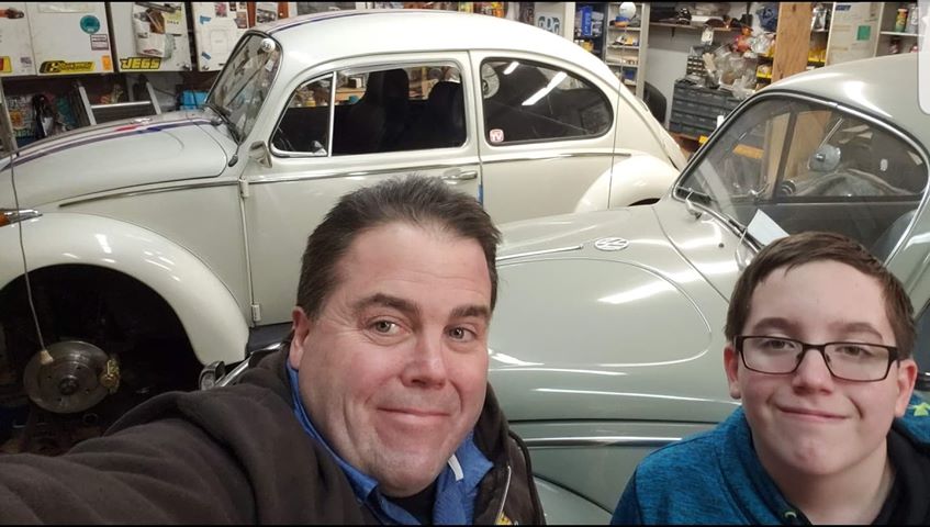 I have been into cars all my life. As my son Jack was growing up he first liked mustangs then 55 chevies especially the one that I restored that I started on when he was about 1 through age 4. We went to Disney around that time and Jack really liked the whole Herbie the love bug car and story. Came back, sold the 55. Kept my prostreet 750 HP 1939 Studebaker. Bought a new 13 mustang Gt. Year later traded with cash for a 08 Shelby gt500. At that point jacks interest in Volkswagens continued to develop. He started having my wife Suzanne and I start to bring him to the local VW of cny car show. After going to the VW shows for a couple of years. I started to realize how the VW life style was so different than other car community's in a very good way. It was like one big family. We got to meet some great people including Dan Stevens president of the local VW club.
