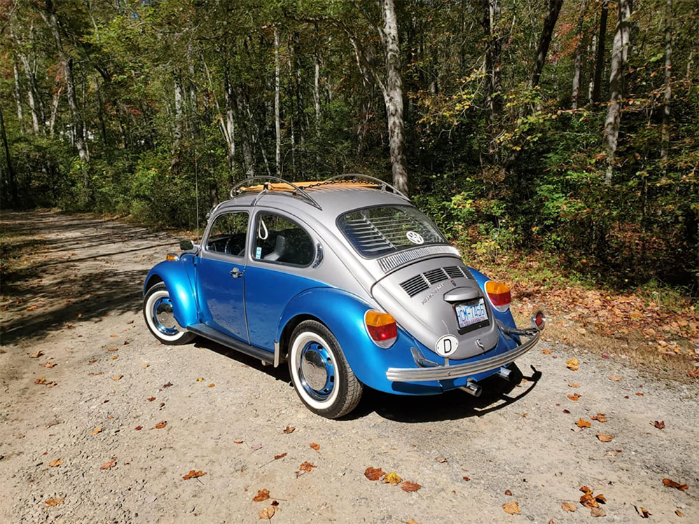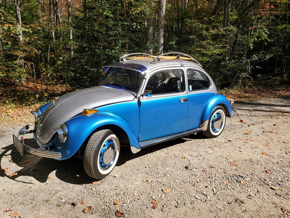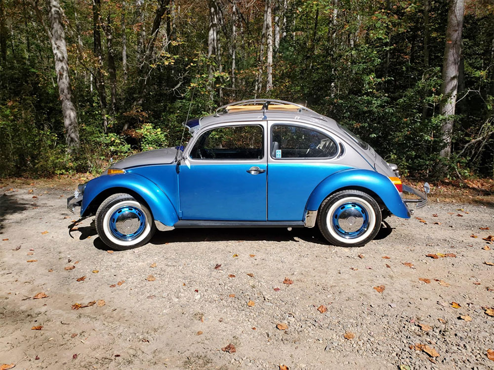 This is Harrison, my 1974 Standard VW. I found this little gem sitting in a garage in the mountains of North Carolina. It was stripped down to a basic shell with a new paint job. Seeing it brought back fond memories of my first car, a '68 Bug, followed by my next, a '71. I finally convinced the owner to sell it to me and brought it home and started restoration.