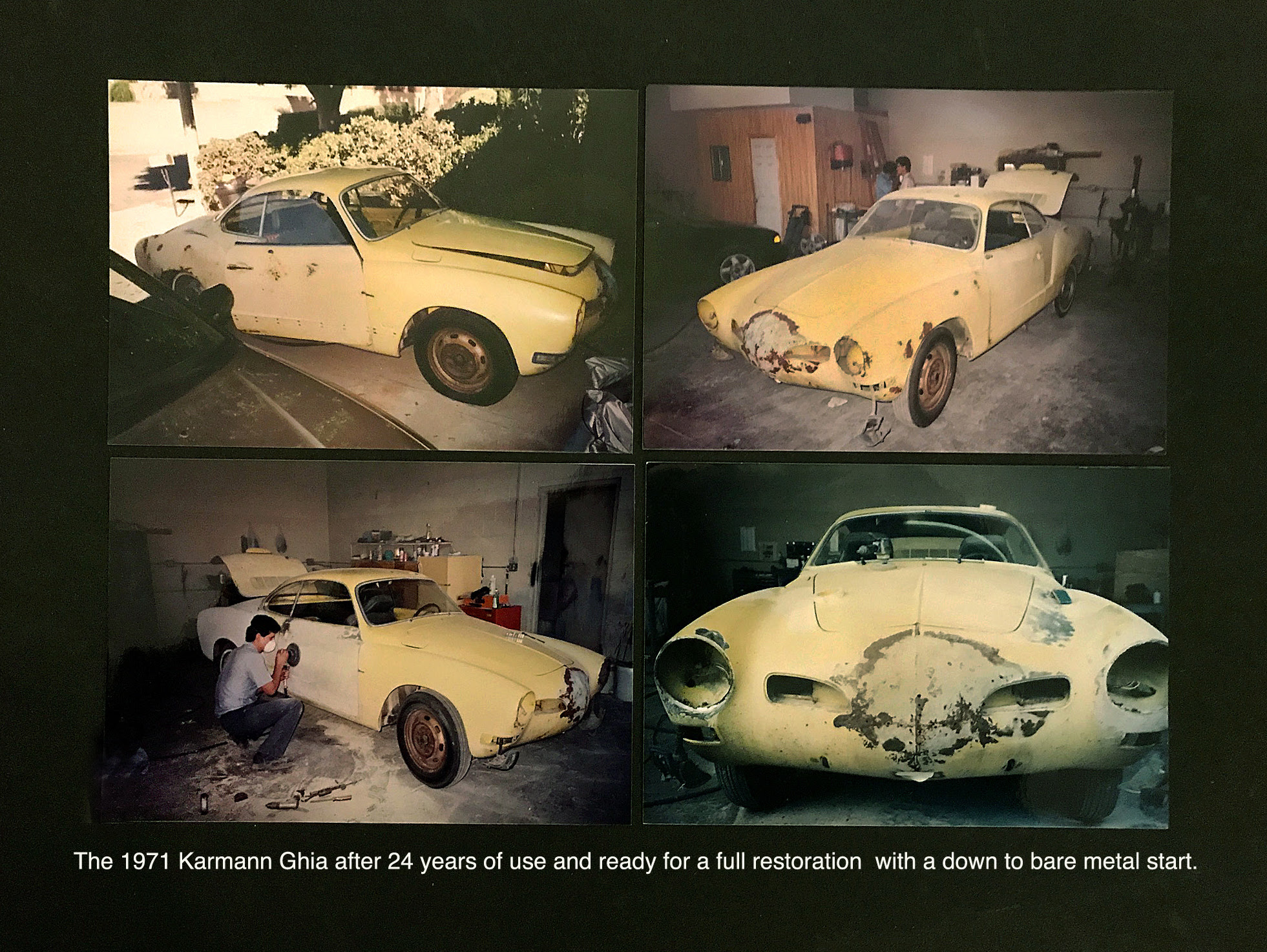 In 1971, we were on our way to buy a brand new VW Beetle at Wilshire VW in Los Angeles and as we arrived and walked in the dealership, there, in it's yellow glory, sat a Karmann Ghia in center stage on the showroom floor. "I've always wanted a Ghia," I thought but could we afford a higher payment. The salesman approached us and asked if we were interested in their "prize" sports car and I blurted out, "How much more a month would the payment be from a Beatle. With a big smile on his face he said, "Nine dollars more a month and about $50 more down payment. "Gee" I said to Pam, "Can we afford $86 a month" and she said, as she had a full time job and I was just starting my photo studio, "Lets take it!" "I'll never forget driving that sporty, bright yellow Ghia right out of the showroom floor."