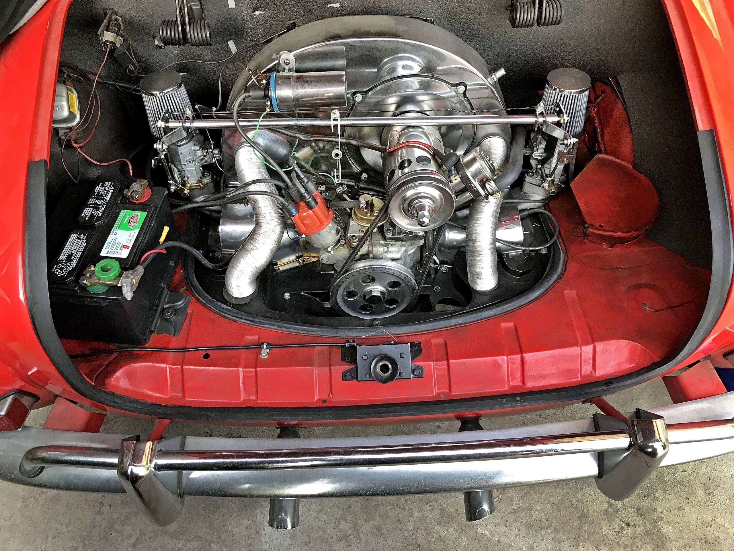 About 10 years ago, I felt like the 1600cc dual port engine at 60 hp needed a little boost so by complete accident, I was browsing the internet and came across "Baby Progressive Dual Webers" carbs, the same size as the original single throat Solex Carburetor that came with the car. We installed the "Dual Webers" and managed to bump an extra 8-9 hp so now the Ghia is a "little Red Hot Rod."