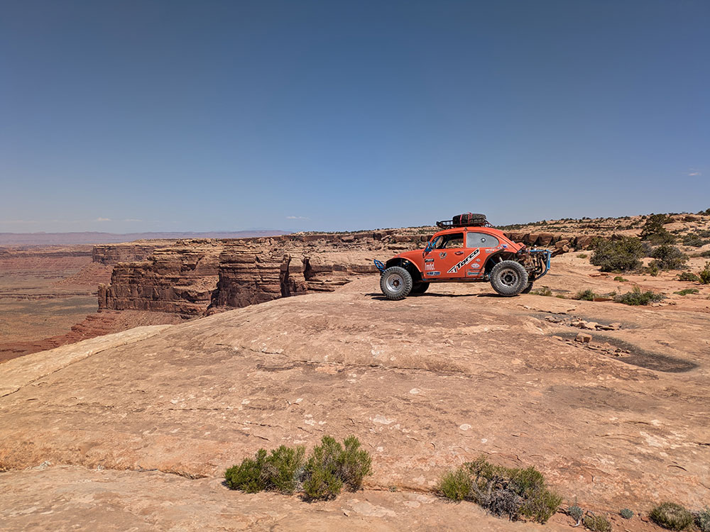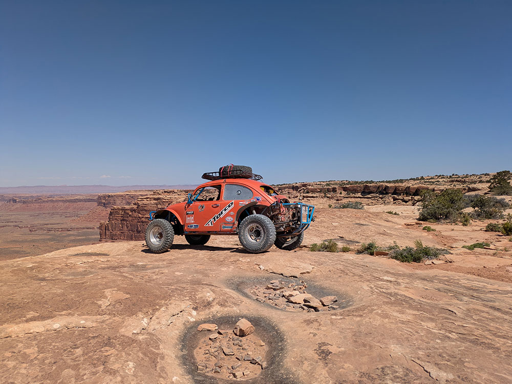 This is "Monk" my 1970 Baja Bug...first VW that I have ever owned. I was looking for a lightweight vehicle that I could trailer behind my RV and use for off-road exploring as well as grocery runs... so it needed to be plated. Bought this 16 months ago.. it had been sitting under a palm tree in Solana Beach, CA for unknown length of time. However it has great bones (fuel cell, Racerunner shocks front and rear, full cage, 1915 built motor with 110 cam, dual Delortos, etc), original builder was planning on building it for Class 5. When I bought it, it had been through two intermediate owners and had been completely run into the ground... with what appeared to be NO maintenance. Work I have done to it... using lots of parts from JBugs... Front beam and hub rebuild. Added front disc rotors (had no front brakes) Completely rewired. Original wiring had been done well and was laced nicely but the builder had used CCA (copper clad aluminum) stranded wire and ALL connections had corroded and would break if you touched or flexed them... literally. CCA should be outlawed. Rewired entire vehicle with copper stranded wire. Added new LED headlights, Nilight front and roof mounted off-road lights. Replaced all other incandescent bulbs with LED. New distributor (water had entered and destroyed bearings and centrifical advance) with Pertronix coil and ignition module which failed after less than a year so am back to good old reliable breaker points. Rebuilt both Delorto carbs and linkage Transaxle rebuilt (I hired this done) 1915 motor top end rebuild with jugs, pistons and new heads from JBugs. I eventually got the original motor to run but compression was in the 60psi range with one cylinder at 53. When I tore the motor down, I could see pit marks on the bottom of the #1 cylinder. I suspect that rain had entered the motor and that cylinder had accumulated some water and rusted from when it was sitting under the palm tree. Bought new heads with oversize stainless valves. New Mongrel front tires Added roof rack More work to do but Monk now runs hard and I have good confidence it will be reliable as well for exploring on and off-road (knock on wood) since I have been into just about everything on this bug. Pix are from near Mexican Hat, UT.