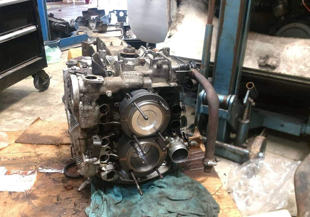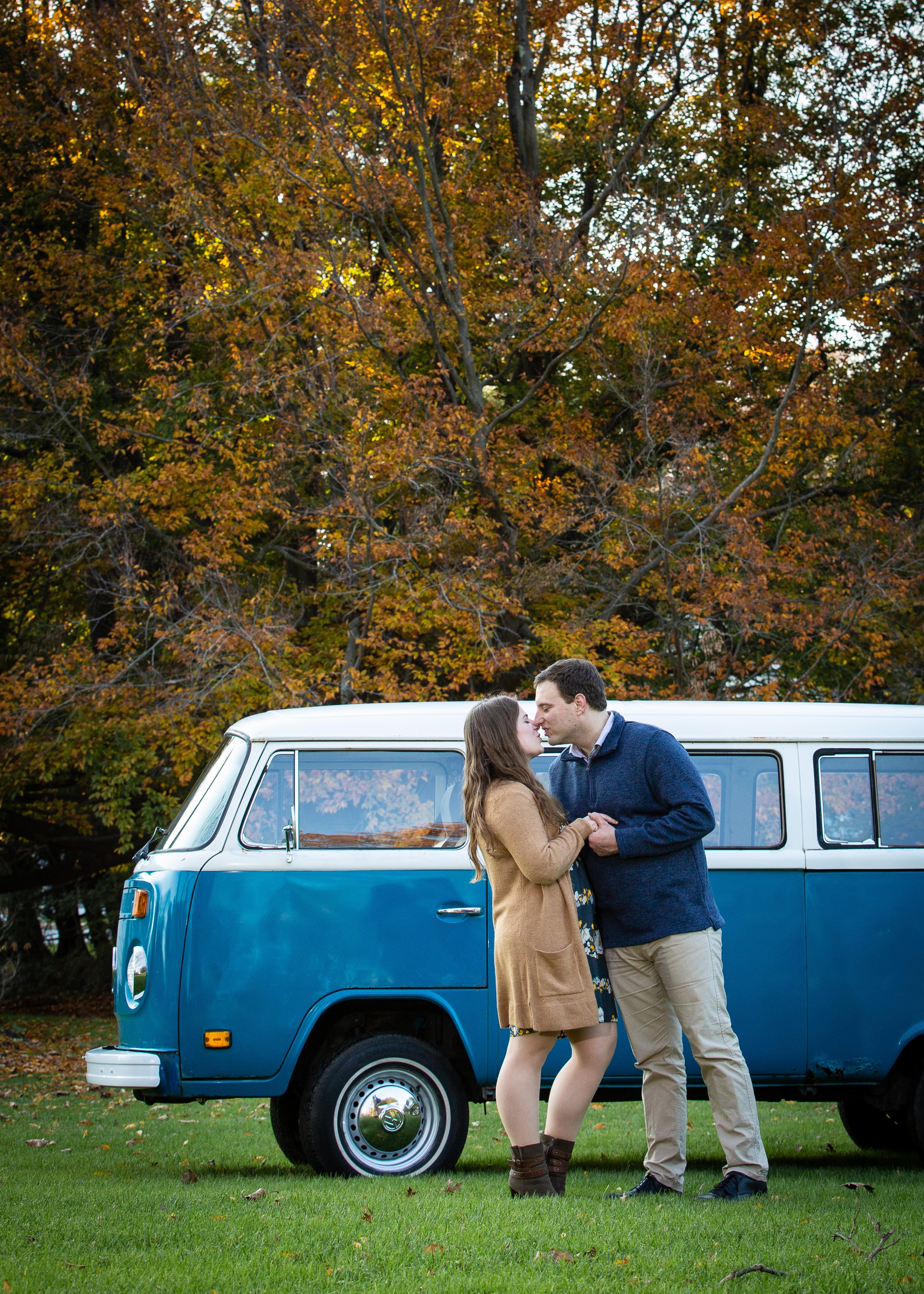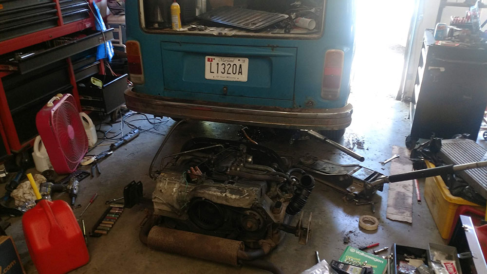 I installed a new fuel pump, some fuel and vacuum hose, and a new battery and set off from Baltimore to Philly. We made it about halfway before I lost all compression and had to tow it the rest of the way. Melv got an engine rebuild with new pistons and cylinders on my friend's garage floor. We took our engagement photos with him, then did welding and bodywork, new window seals, new paint, and finally a new TMI door panel kit from JBugs.
