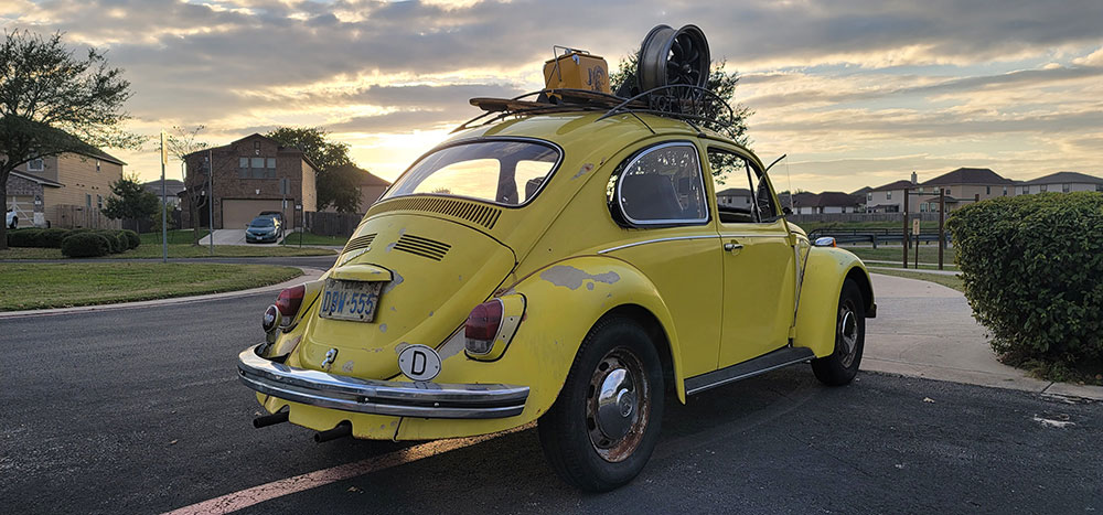 This is my 1970 Type 1 "Daffy". I bought this Beetle on 9/8/19 in the middle of nowhere Texas, a couple of hours outside of San Antonio. Had been sitting in a field just waiting to be rescued. I bought it from the second owner who daily drove it from the late 70's to the early 90's and it sadly was forgotten about.