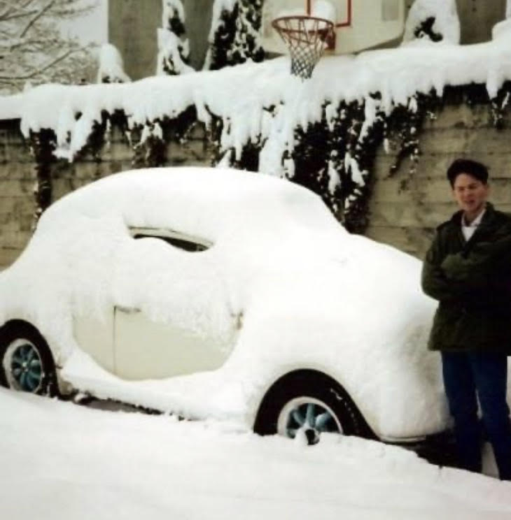Over the years, it has served as a daily driver for about 10 years and as a back-up or fair weather car for the remaining years. Despite this, I have never been afraid to take it out in snow, as seen in these photos. The blue wheels were in 1980s and the other snow pic is more recent.