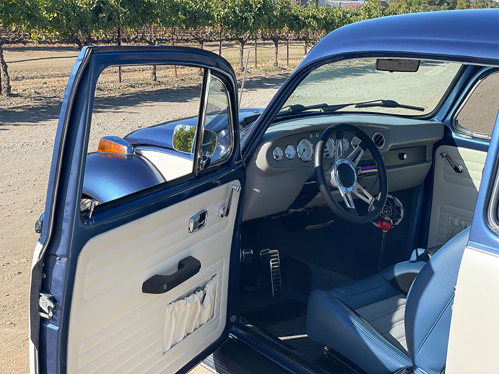 I stripped the car down to a rolling chassis and sent it in for paint. COVID delays and what have you…I got the car back in 2020 with fresh paint and installed a new 1915 with dual 40s, alternator, serpentine pulleys etc. Thanks largely to JBugs, a new interior with low backs, headliner, speaker tray, carpet was waiting in my garage along with a custom 911 dash, suspension, etc.