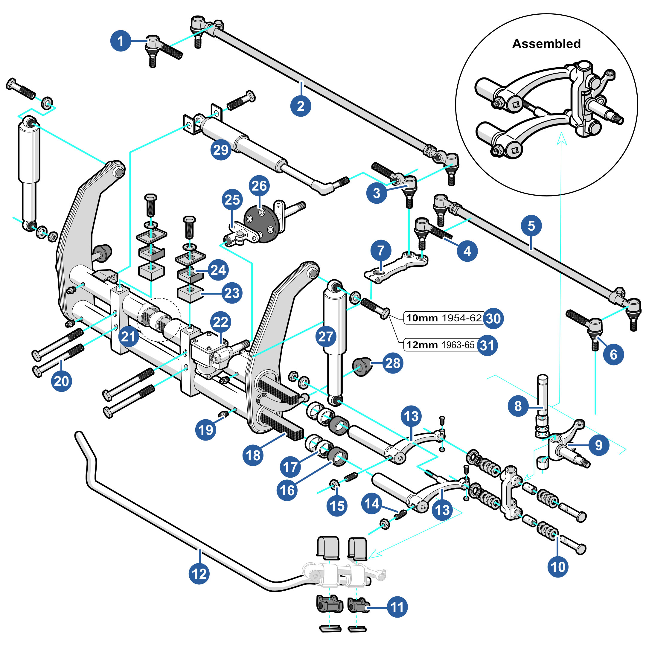This adjustable left side tie rod assembly is made by Italian manufacturer OCAP. It fits all 1954 to 1965 Beetles as well as 1956 to 1965 Karmann Ghias. The assembly comes with both tie rods as well as lock plates to set the steering adjustment. Each end is adjustable for proper alignment of the front end. Please note that 1960 and earlier Type 1s did not come with an adjustable left side tie rod, but these will function perfectly on those models. The tie rod ends are threaded 10x1.25mm and use a 17mm nut to fasten them to the spindle/pitman arm.