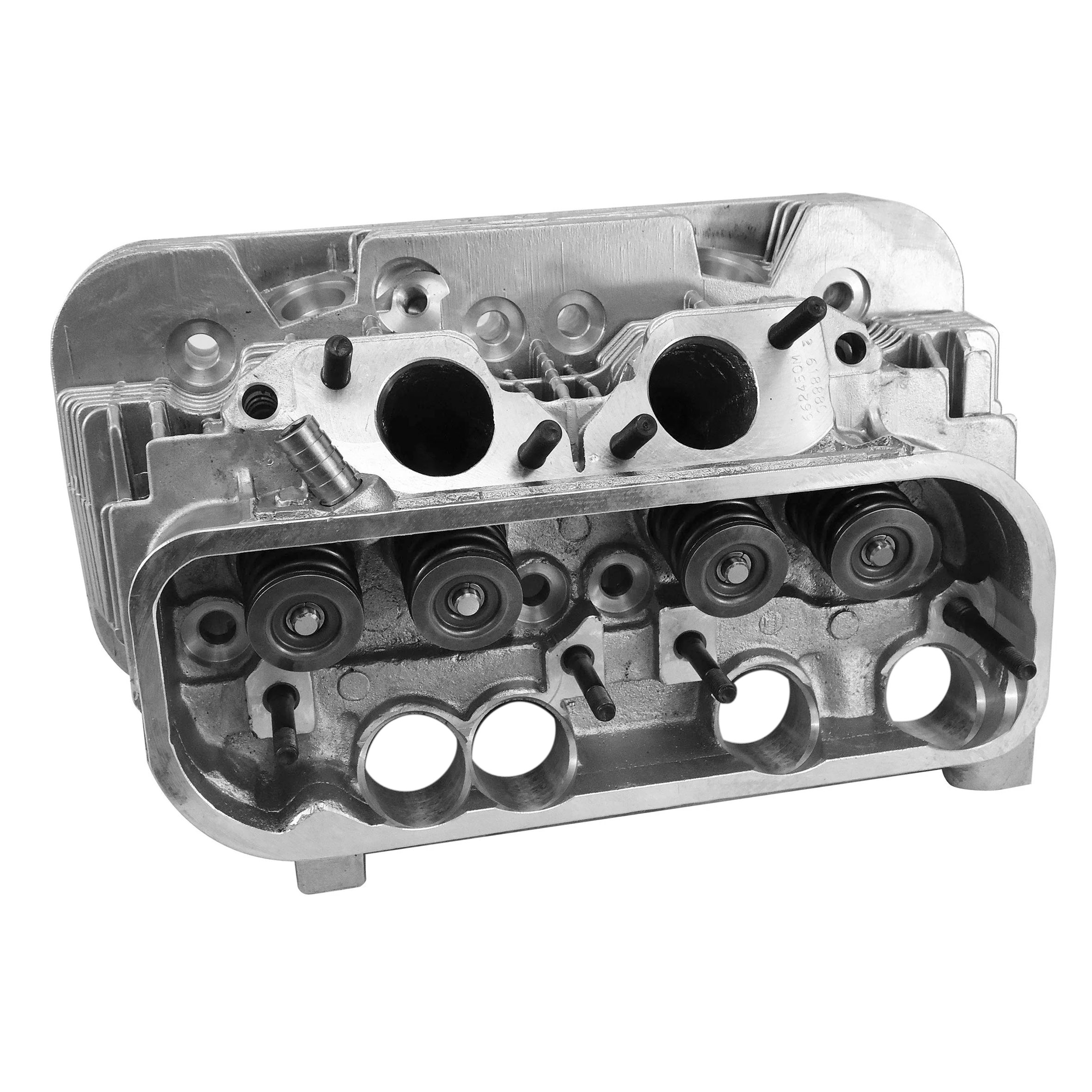 The all new (not rebuilt) complete VW cylinder head for Type 2 & 4 based engines is machined for 93mm stock 1800cc pistons & cylinders and will accept big bore 96mm pistons and cylinders. The head comes with intake & exhaust valves installed in bronze valve guides and has EGR and head temp sensor provisions. The cylinder head is sold individually, 2 heads are needed per engine. The VW dual port Type 2 cylinder head fits 1973-1975 Type 2 Bus Models.