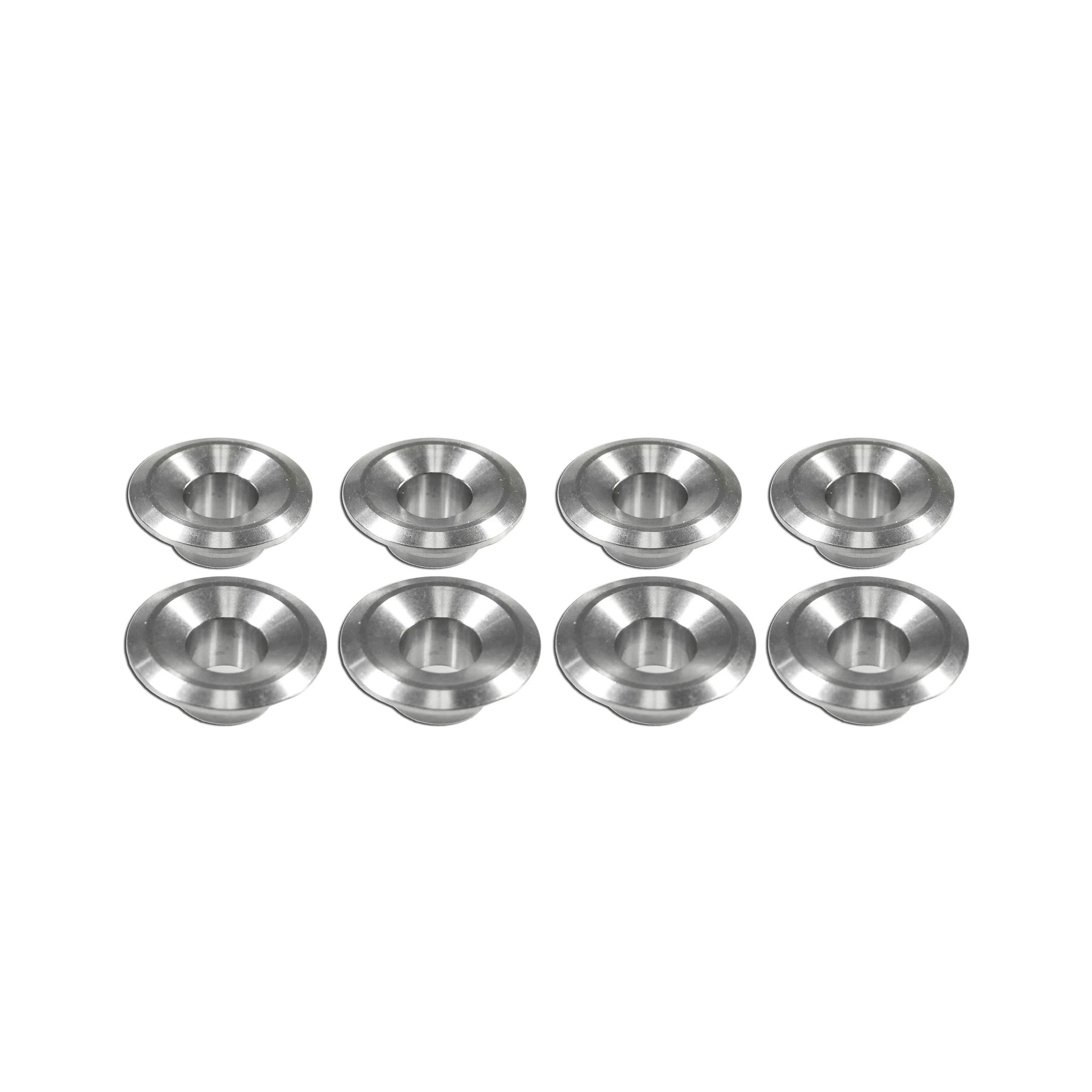 These titanium valve spring retainers are the ultimate when it comes to lightweight and super strong spring retainers. The retainers are designed to be used with single or dual springs and are sold as a set of 8. The titanium spring retainers fit 1200cc (40 Horse) through 1600cc based Type 1, 2 and 3 heads, valves, springs and accept standard valve keepers.