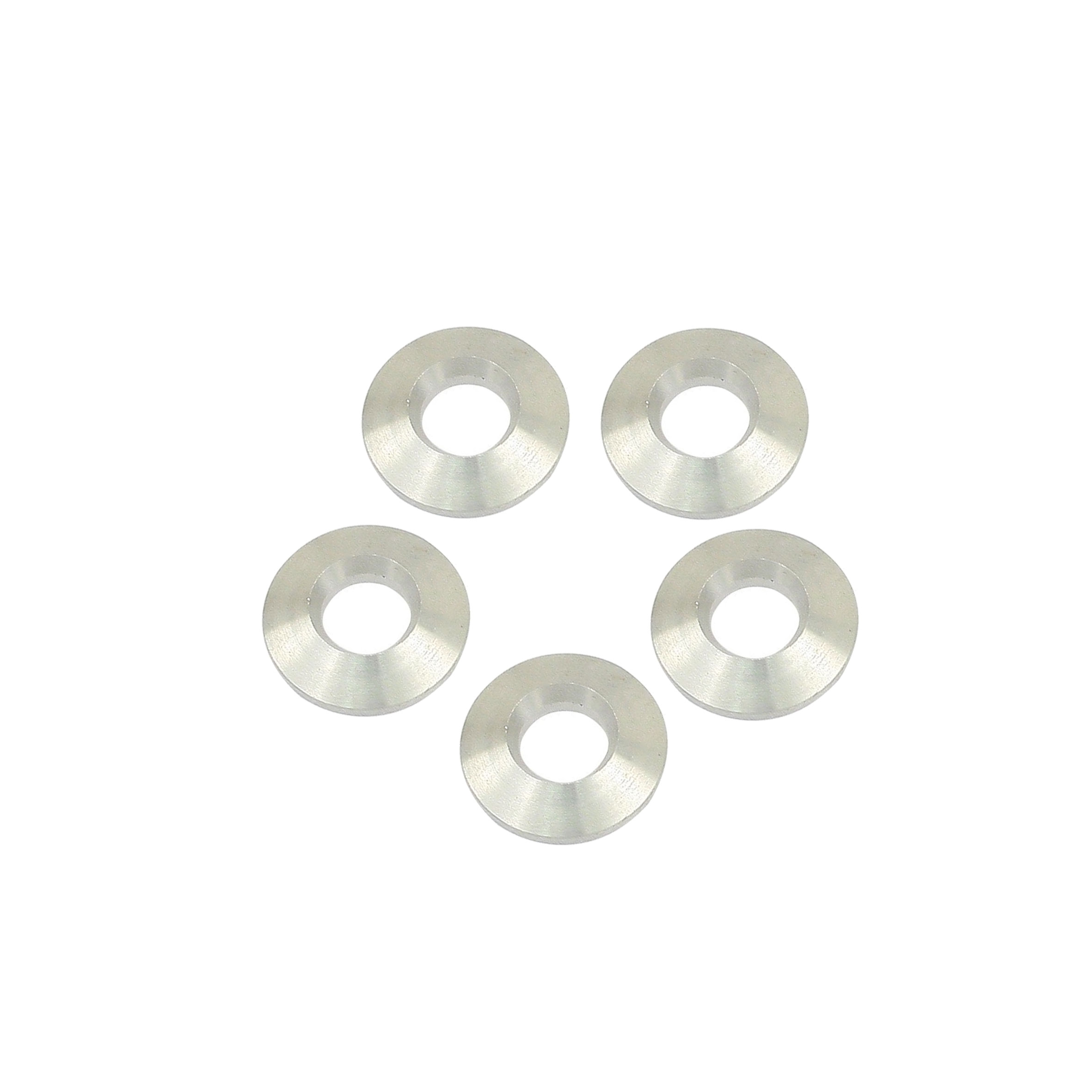 These aluminum wheel washers offer a secure fit when using 60°, or acorn seat lug nuts with a flat face wheel. The washer takes the space between the lug and the wheel and prevents the lug nut from damaging the face of the wheel. The washers are solds in packs of 5.