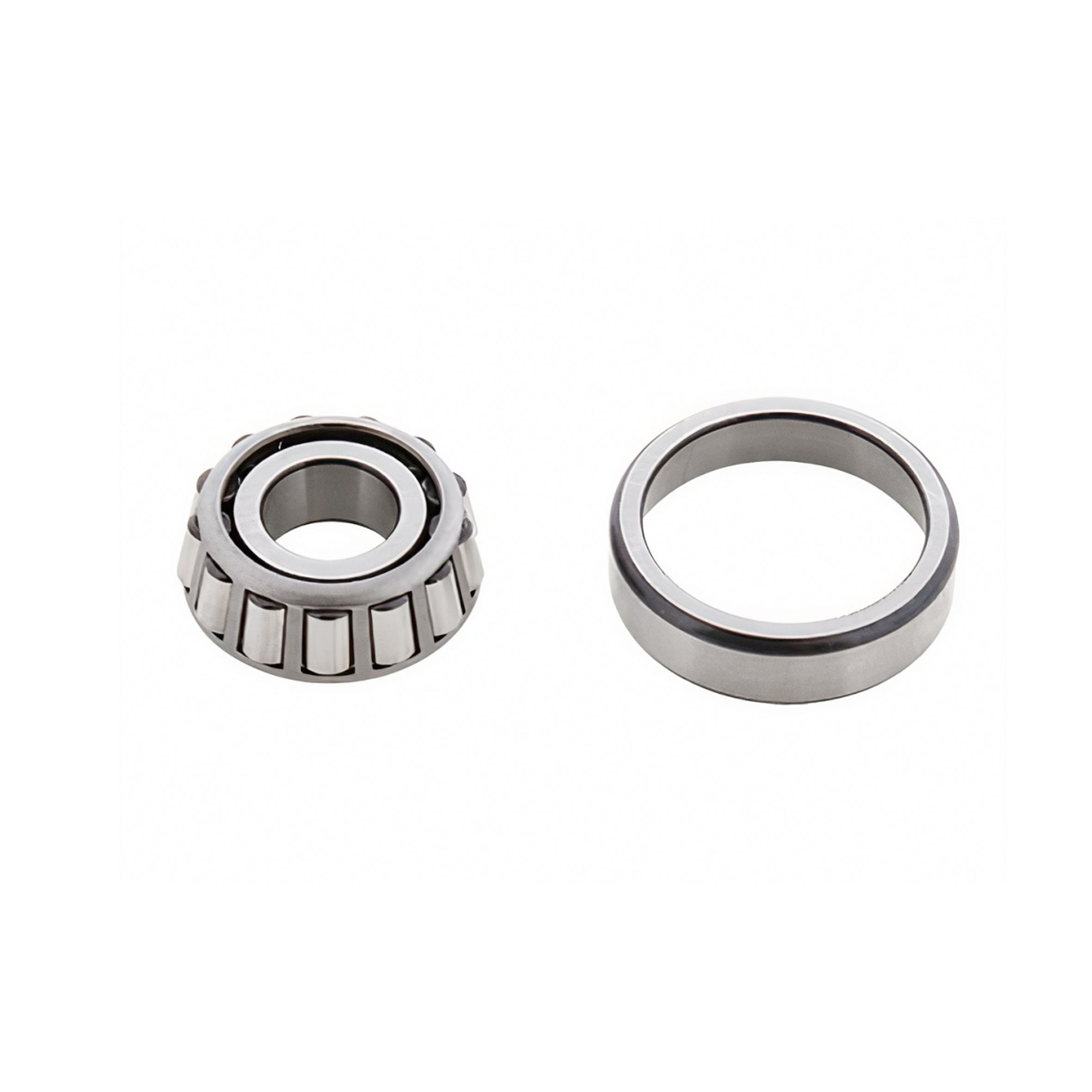 This outer front wheel bearing is a tapered roller style bearing. It is a direct replacement for the ball bearings Volkswagen originally used in their early models, and a huge improvement in terms of durability. The bearing fits 1954 through 1965 Beetle and 1956 through 1965 Karmann Ghia. Tapered roller bearings can handle much more stress (both vertical and horizontal force) than ball bearings before they fail, making them much more robust than what VW offered in the 1950s and early '60s. The outer race must be pressed into the brake drum before installing the bearing. Remember to pack the bearings with grease before installation and don't forget to purchase a grease cap and wheel seal if needed.