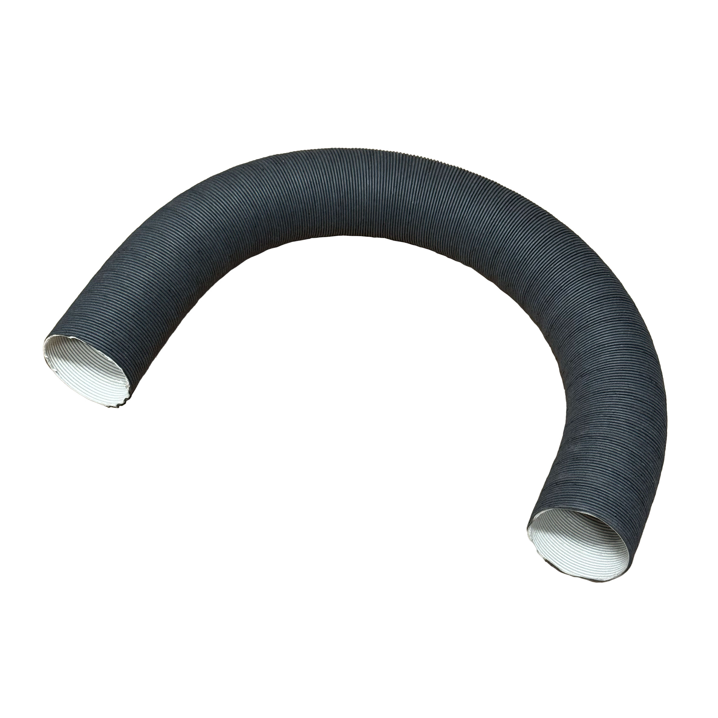 This hose connects the two large outlets on the fan shroud to the heater boxes on all Type 1 engines. The black hose is held in place using two large hose clamps (part #MH28). Also known as a fresh air hose or tube, it has a 50mm (1 15/16") inside diameter (to fit over the port on the fan shroud) and it is roughly 560mm (22"). This hose is made primarily of paper (black outer & beige inner) which is wrapped over an aluminum core. It is stiffer and less flexible than the all aluminum hoses. It fits all Type 1 engines equipped with fresh air heater boxes and fan shroud, which include 1961 to 1977 Standard Beetles, 1971 to 1979 Super Beetles, 1961 to 1974 Karmann Ghias, 1961 to 1971 Type 2s (Bus, Single Cab, Double Cab), and 1974 Things.