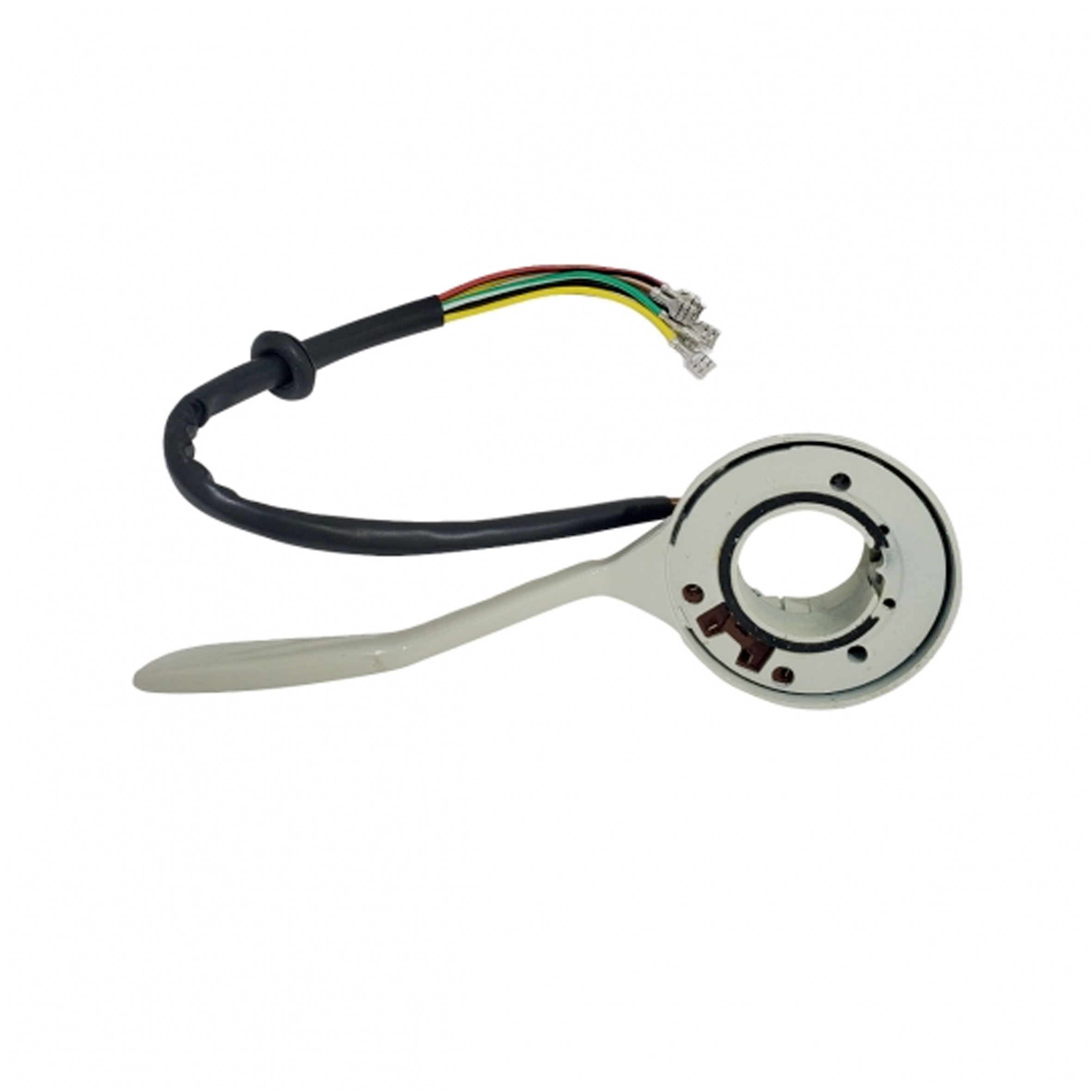 The silver-beige VW turn signal switch is a six wire unit. The switch has two inputs, one from the flasher relay, and another from the brake light switch. It has individual outputs for the front left, front right, rear left and rear right. This way the switch can either provide a brake light or a turn signal output to the rear as needed.