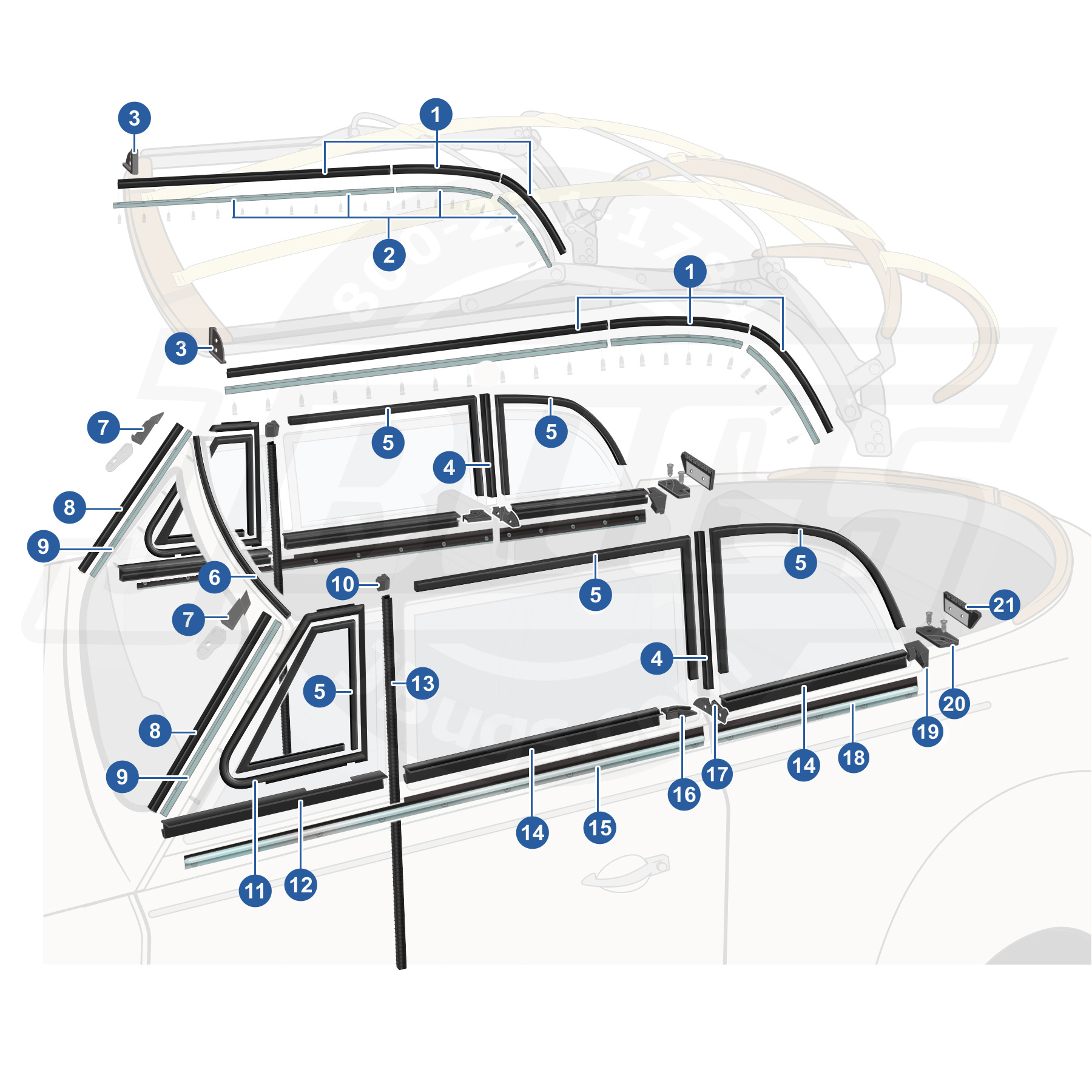 Our high quality VW Front Quarter Wedges fit 1973-1979 Super Convertible. VW Convertible Front Quarter Wedges, Pair. (151847352C)