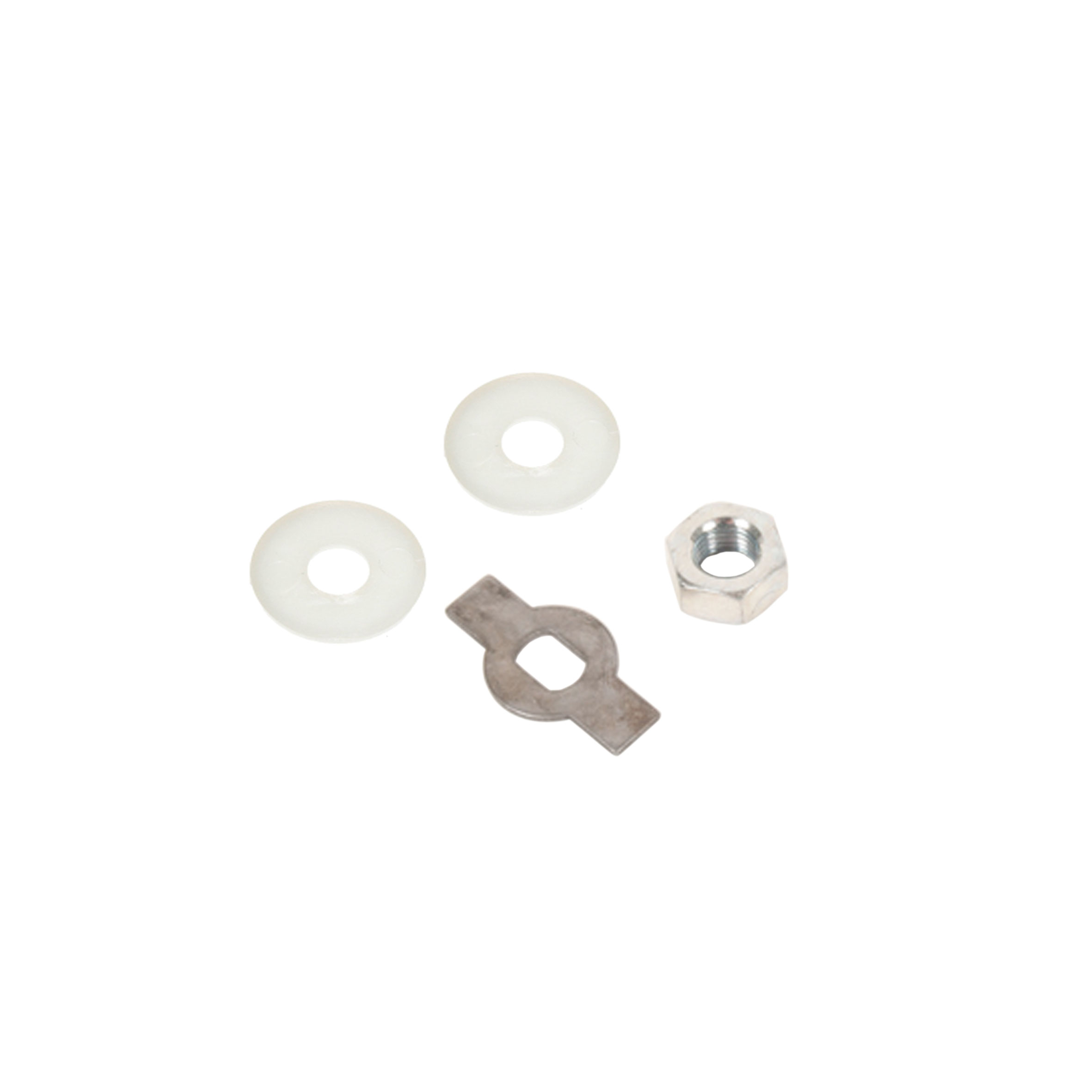 The VW Side View Round Mirror hardware fits 1955-1967 Type 2 Bus models with hinge mounted round mirrors. The hardware includes the clamp mounting nut, a locking plate and two spacers to prevent body damage.