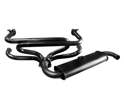 EMPI offers a number of different header and muffler combinations. For any given header there are commonly a number of mufflers that will bolt up to it directly. However, some of the header and muffler combinations are not interchangeable.