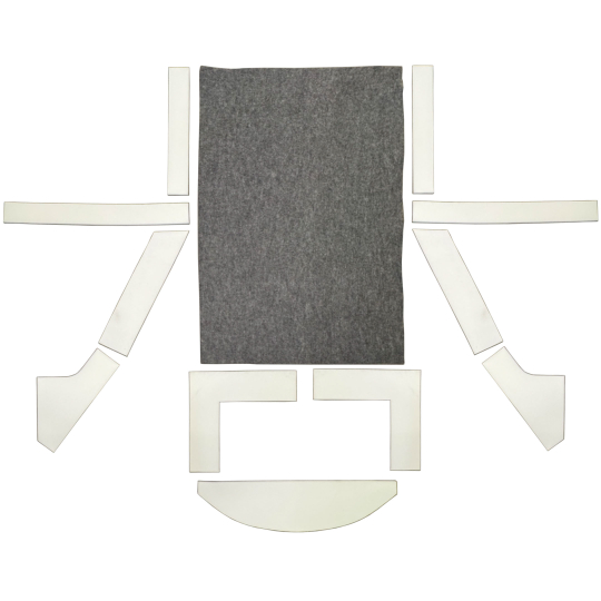 This Volkswagen headliner padding kit is compatible with 1958 and later classic VW Beetles and Super Beetle Sedans. This high quality padding kit should be considered essential when installing any new headliner. The kit includes a soft fabric padding for roof panel itself and foam padding for the door posts, above and behind the quarter windows, and around the rear window. This headliner padding kit will help reduce interior noise and remove some of the echoing "tin can" sound inside your 1958 to 1977 Beetle. Additionally, the headliner padding will help smooth out the headliner and give it the proper shape onece it is installed. This kit is compatible with the VW Beetle or Super Beetle Sedan. The Headliner Pad Kit can be used in Ragtops and Sunroof cars once the roof pad is trimmed accordingly.