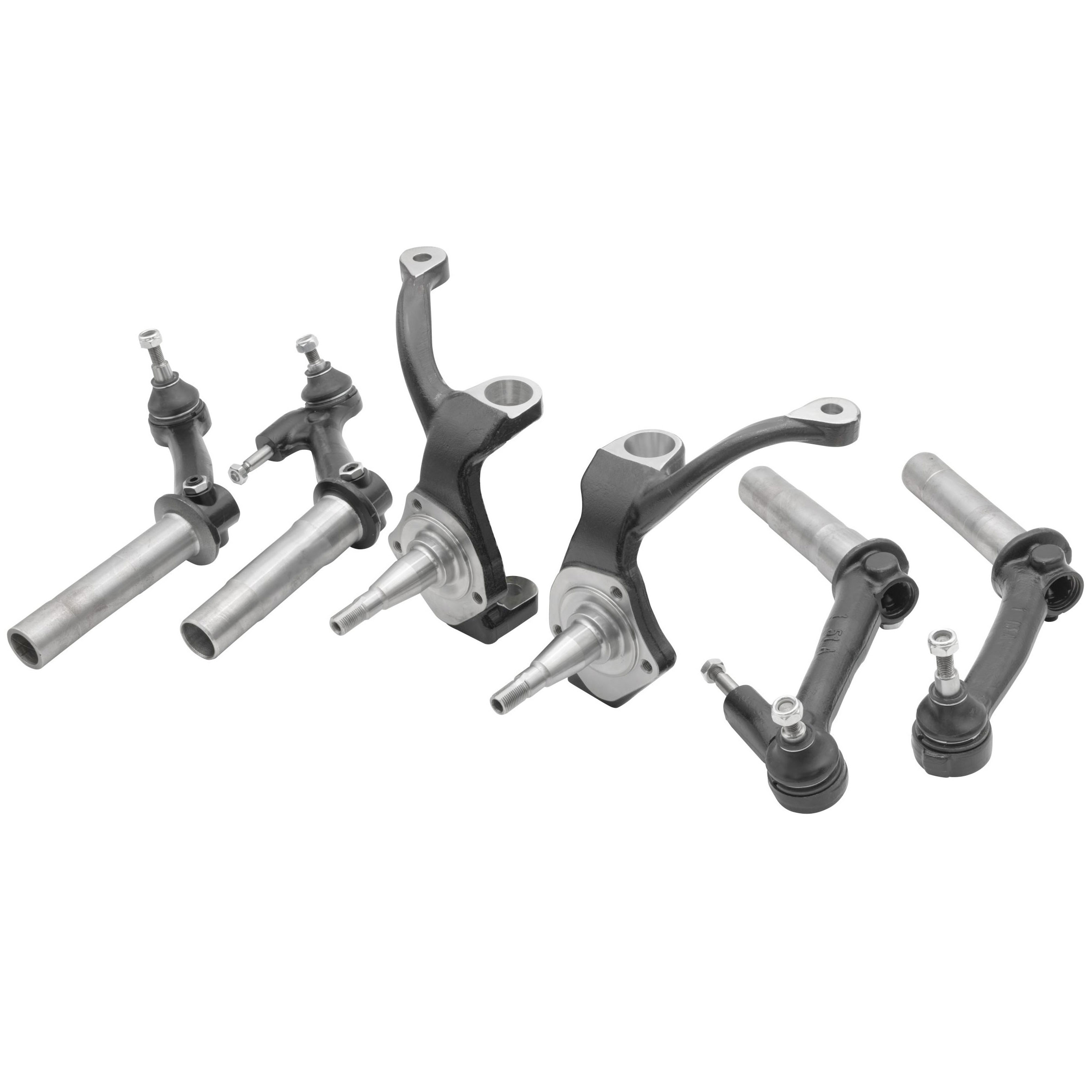 The EMPI VW Thing spindles and ball joint trailing arms are new, not rebuilt, and are forged just like the OEM models. EMPI pre-installs ball joints so the spindles and arms are ready to bolt on with the included grub screws and nuts. New eccentric cams and washers are also included along with trailing arm caps.