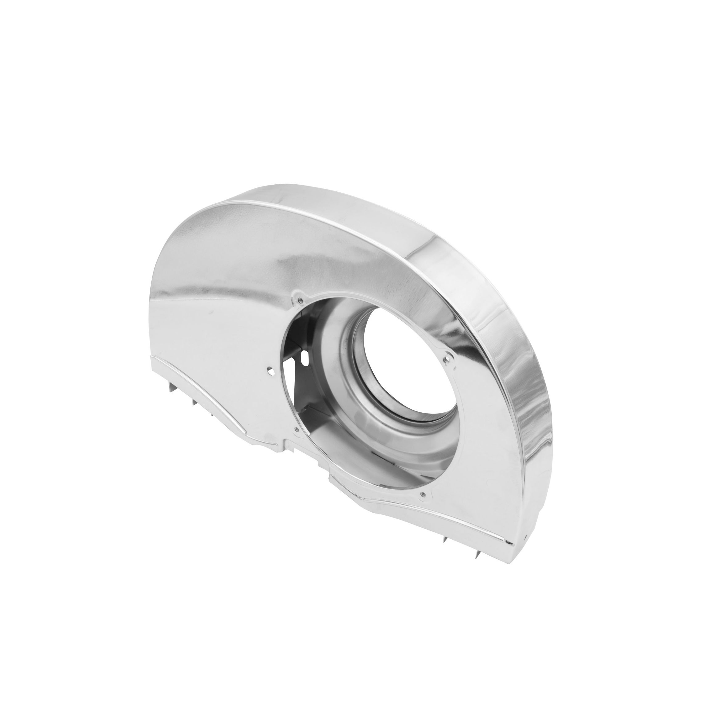 This VW fan shroud is designed for 1300-1600cc Type 1 engines with a doghouse oil cooler. This fan shroud comes in a bright chrome finish and is designed for cars without heat. With an air-cooled Volkswagen engine, the fan shroud is very important. The fan pulls in air while the shroud creates a channeling effect to disperse it towards the oil cooler, cylinder heads, pistons and cylinders.