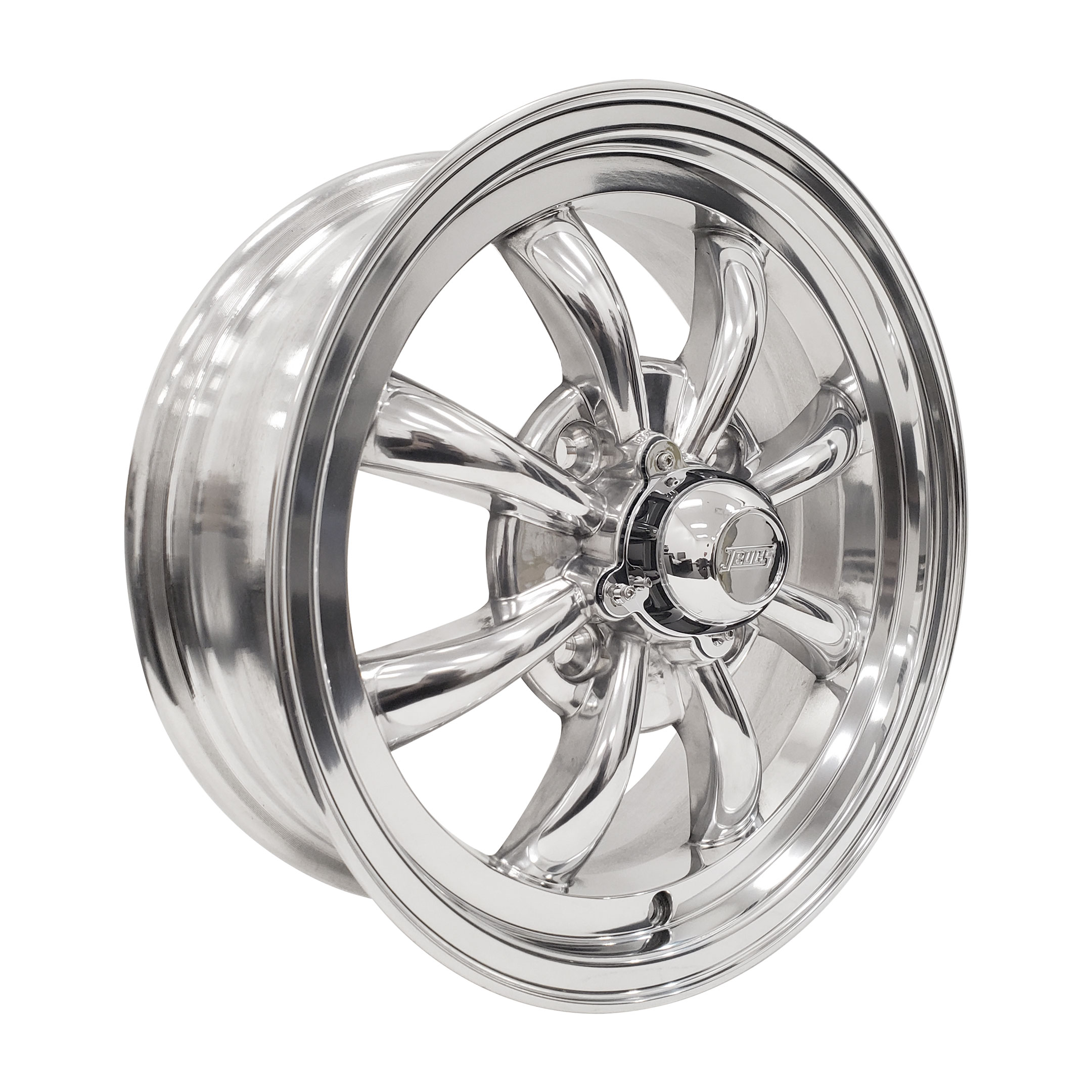 Our JBugs 8 spoke VW wheel features a striking full polished finish that provides a bright, reflective appearance while maintaining superior durability. Manufactured to precise standards and carefully monitored at every production stage, these aluminum wheels deliver long-lasting strength and consistent fitment. Each wheel includes a JBugs-branded center cap and chrome-capped valve stem, arriving ready for easy installation. The 4x130 bolt pattern is designed to fit 60-degree conical seat hardware for secure, proper mounting.