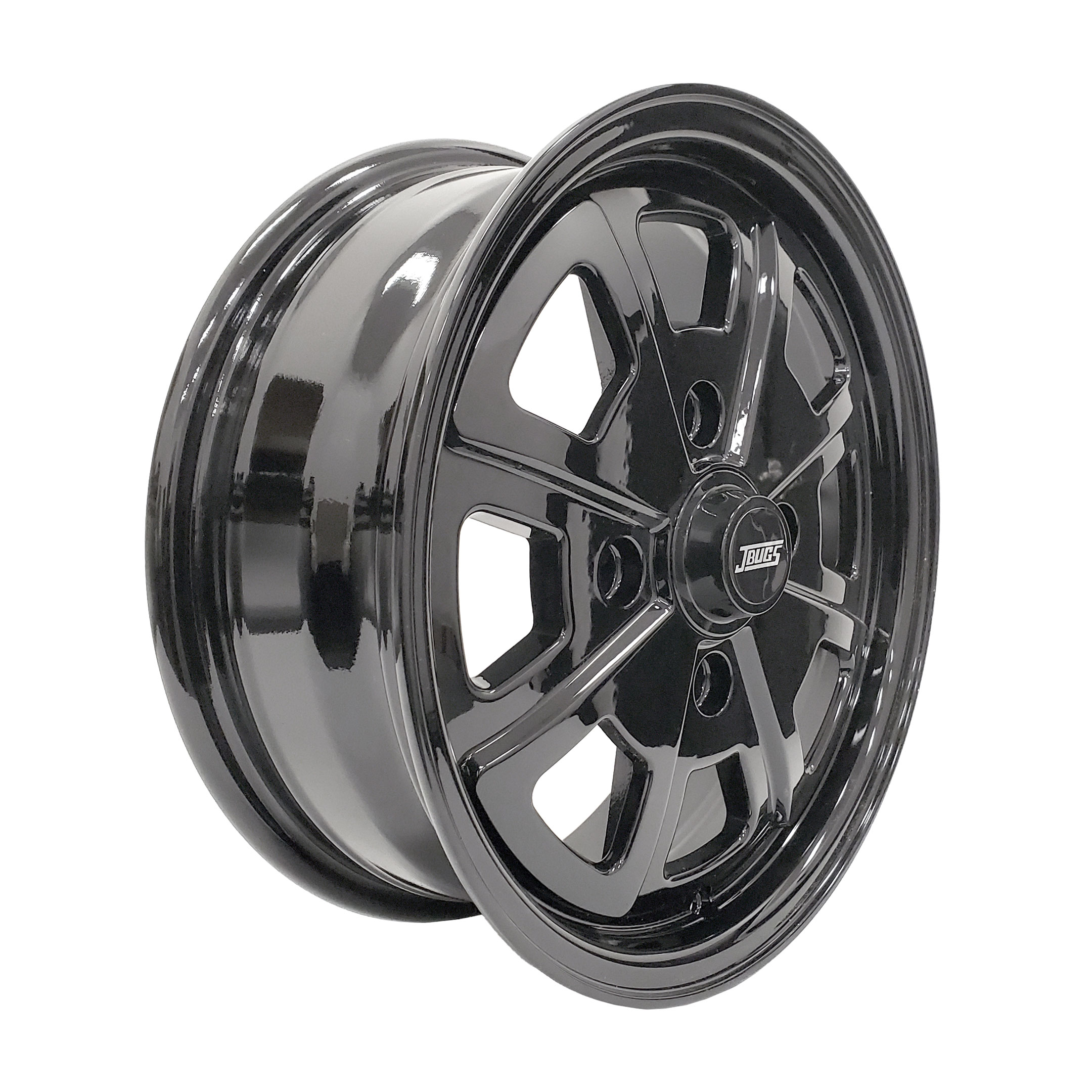 Our JBugs 15x5.5" aluminum 2 liter alloy wheel features the classic 914-style design with a full gloss black finish. The smooth black finish gives the wheel a clean, sporty, and custom look that stands out on any air-cooled VW. Strong, lightweight aluminum construction helps improve both style and performance.