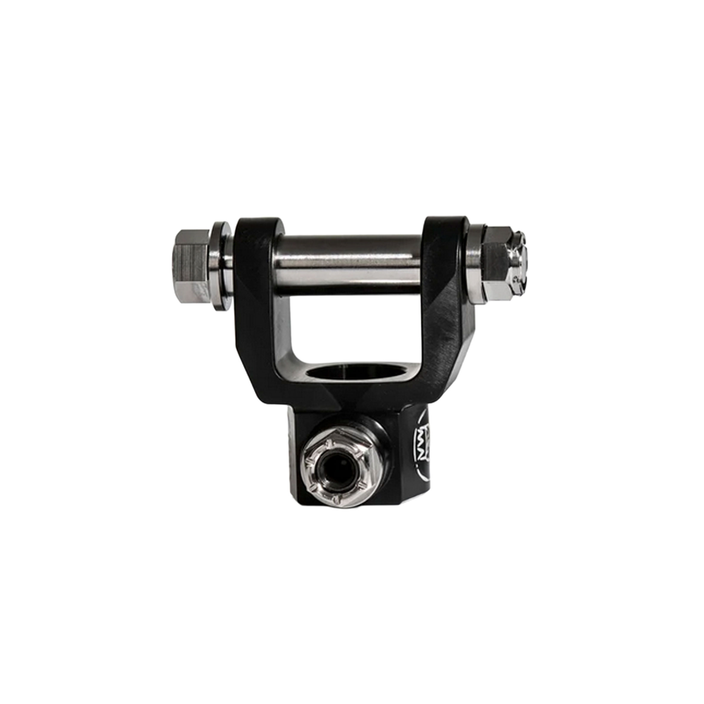 The King Performance late model Billet Aluminum Shift Rod Coupler is the original, not the copy! The 7075-T651 billet aluminum block is CNC machined before being hard anodized black, all in the USA. The shift coupler is held in place to the shiftrod with a titanium shoulder bolt and lock nut. At the transmission end, the coupler is held to the hockey stick with an allen head set screw which is held in place with a low profile titanium lock nut. The specialized hardware only requires 10mm wrenches and a 4mm allen wrench for installation. The King Performance late model shift coupler does not require any modifications or reaming to your original shift rod.