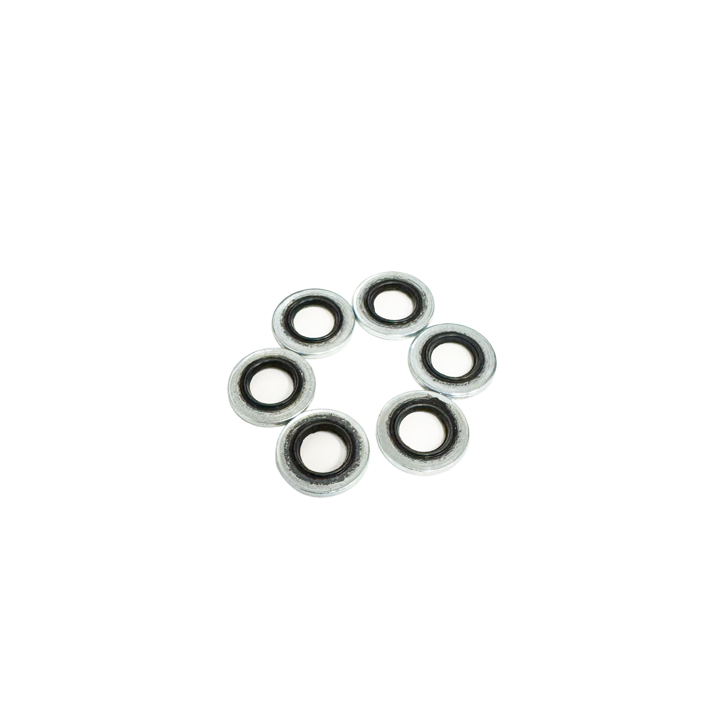 The silicone centered sealing washers are used to seal the sump plate cap nuts. The washers are re-useable with a thick silicone center inside of a steel washer. The 6mm ID washers fit over the sump plate studs on the bottom of the engine and seal the cap nuts to the plate. The sealing washers are sold in a pack of 6 pieces and are a great complement to our re-useable silicone sump plate gaskets. The sealing washers fit: