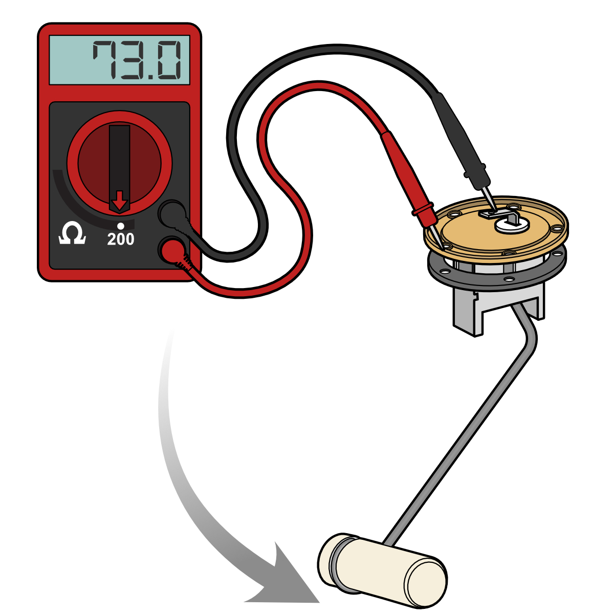 Observe the resistance change as you move the arm. It should change smoothly without sudden jumps or drops. Erratic readings may indicate a worn-out or faulty resistor track inside the sender.